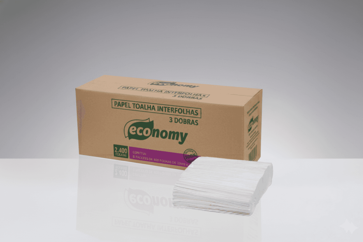 Papel toalha interfolhado com boa absorção e excelente rendimento