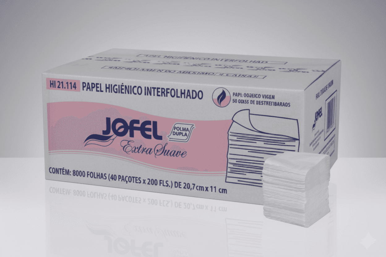 Papel higiênico interfolhado de uso econômico e eficiente.